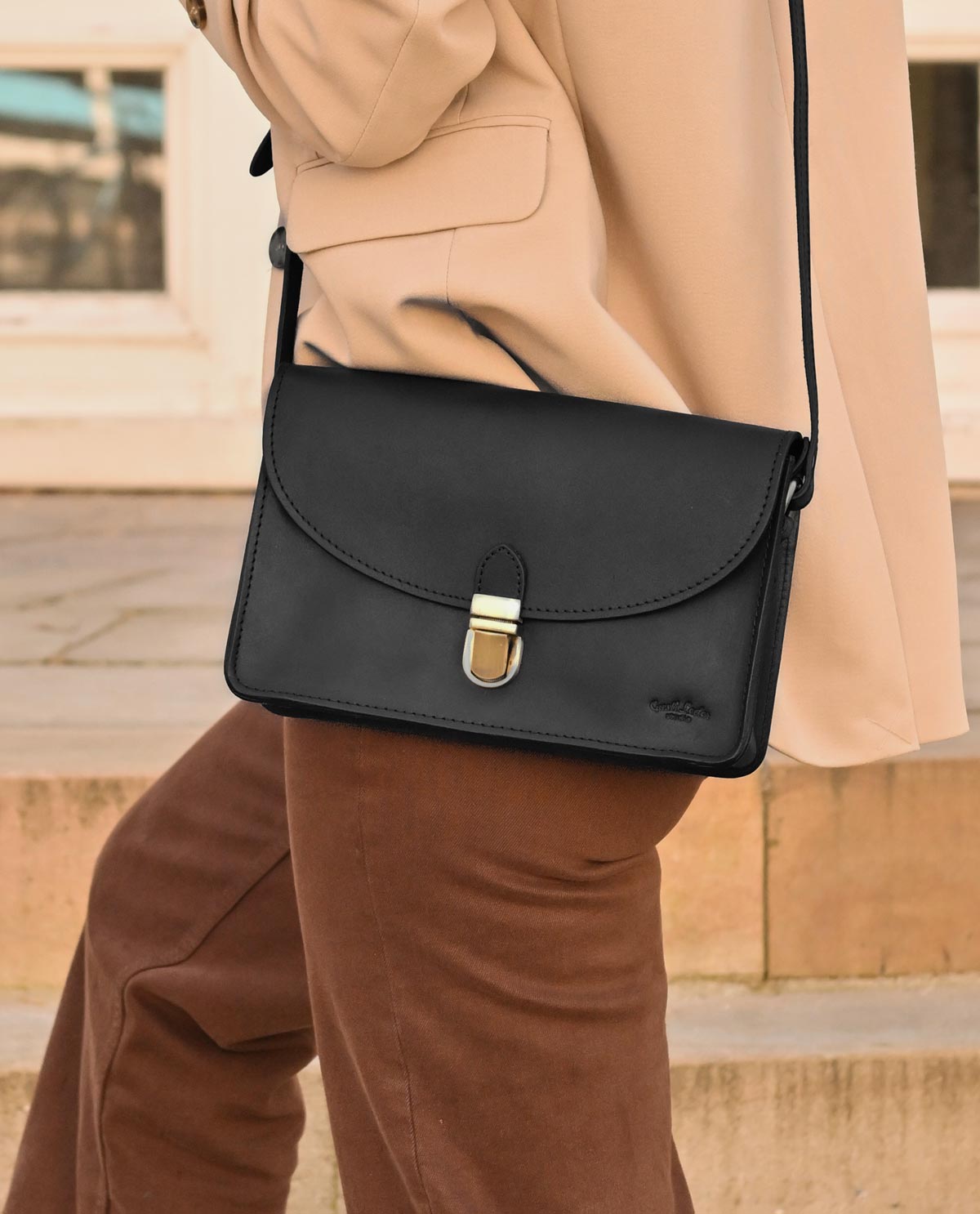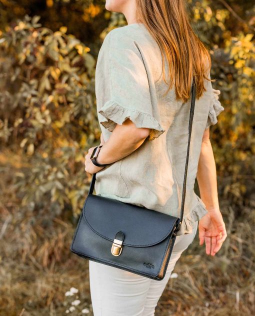 In dieser klassischen Handtasche mit zwei zusätzlichen Innenfächern nimmst Du alles mit, was Du im Alltag oder für einen Abend mit Deinen Liebsten brauchst! Nicht nur Dein aktuelles Lieblingsbuch findet hier ihren Platz. „Zoey“ kannst Du auch einfach mit auf die nächste Party nehmen, denn ihr Look ist nicht nur elegant, sondern zugleich auch partytauglich. Der matt-goldene Schnappverschluss ist einfach zu handhaben und macht den edlen Vintage-Look von „Zoey“ komplett. Inspiriert durch den lebendigen Berliner Großstadt Flair vereint „Zoey“ urbanen Stil mit zeitloser Eleganz.