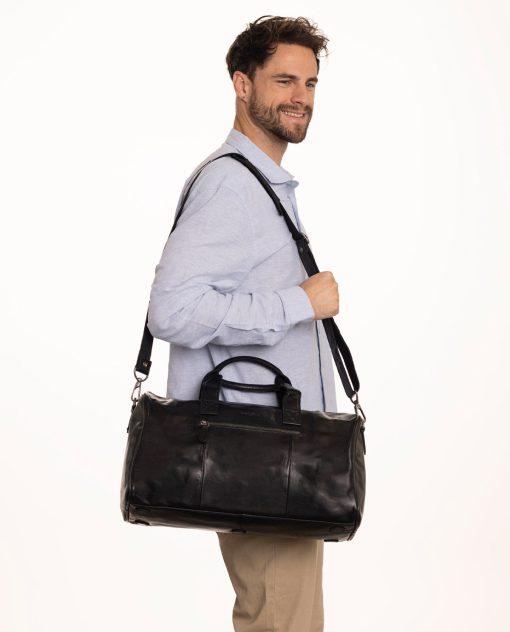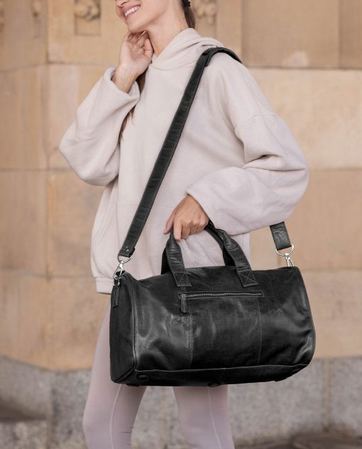 Die Kombination aus länglich weichem, strapazierfähigem schwarzem Büffelleder, zeitlos-klassischem Design und silbernen Reißverschlüssen verleiht „Hall“ einen lässig-coolen Look. Der gepolsterte, längenverstellbare Schultergurt sorgt für angenehmen Tragekomfort, selbst wenn die Tasche vollbeladen ist. Mehrere Reißverschlussfächer außen und innen sowie Einschubfächer bieten zusätzlichen Stauraum und Ordnung, damit Du stets alles griffbereit hast.