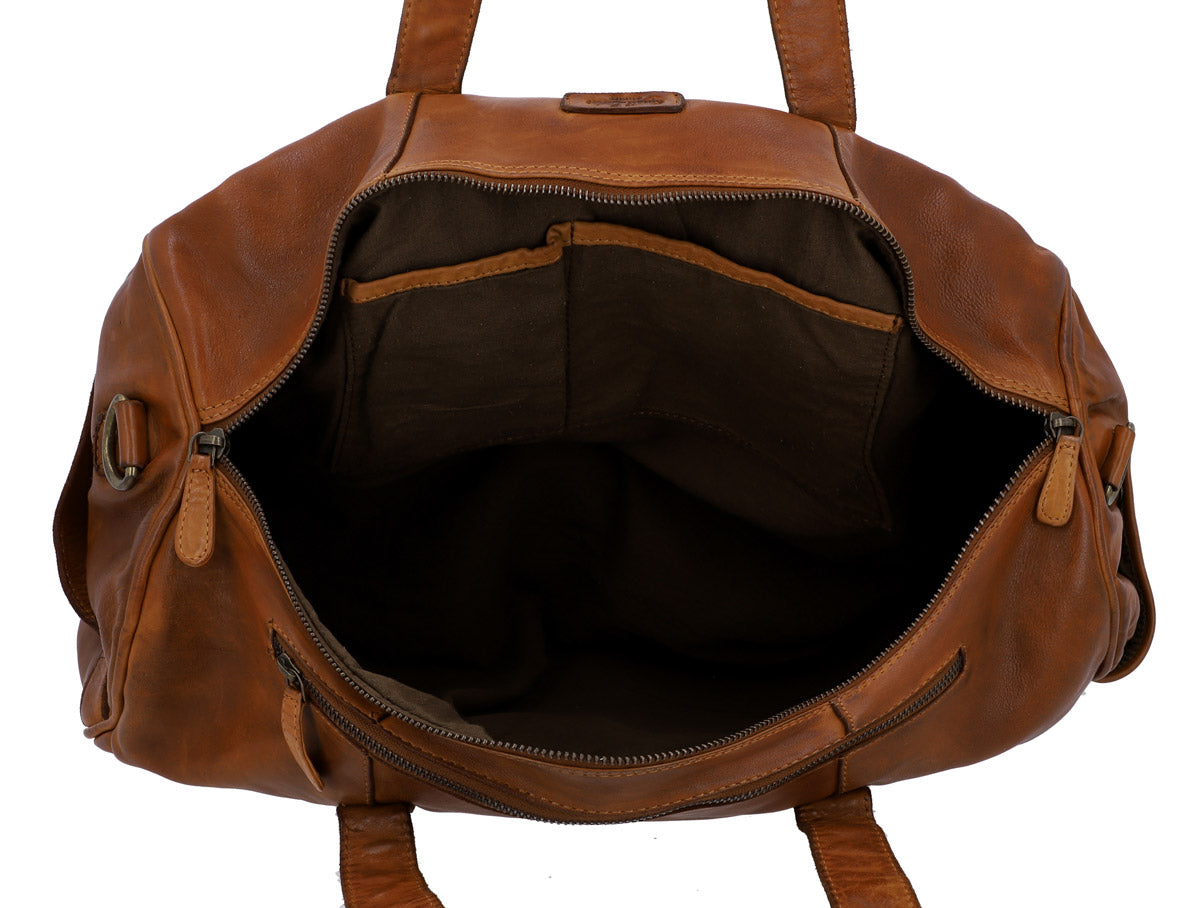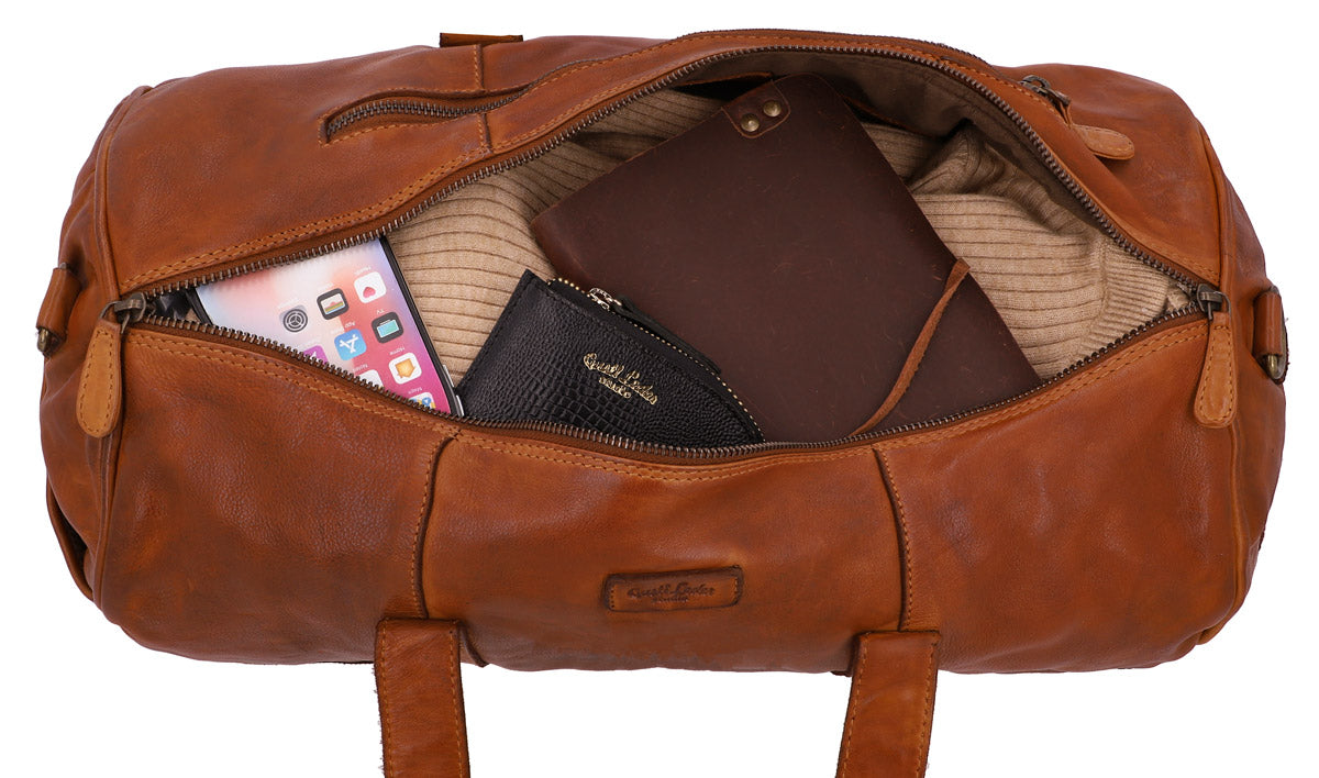 „Oliver“ kommt mit einem mittelgroßen Platzaufgebot daher: Folglich hat die geräumige Tasche genug Platz für deine Klamotten, Schuhe und Kulturbeutel, aber genauso für Notebook und weiteres Equipment. Der angesagte vollnarbige Look des Rindsleders verleiht „Oliver“ derweil Charme einer Vintage-Reisetasche, ohne dabei auf die Vorzüge moderner Reisetaschen zu verzichten. Zusätzlich verfügt er über ein Seitenfach, wo du beispielsweise deine Kopfhörer unterbringen kannst. Eine weitere Reißverschlusstasche vollendet den Look. Die zwei festen Tragehenkel mit abnehmbaren Schultergurt kannst du deinen Weekender so tragen, wie es dir beliebt. Inspiriert durch Berlin, ergänzt diese Tasche jeden urbanen Look perfekt.