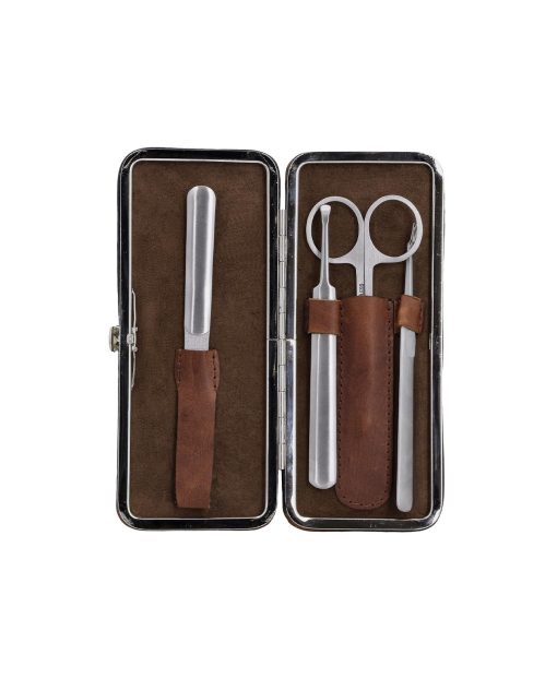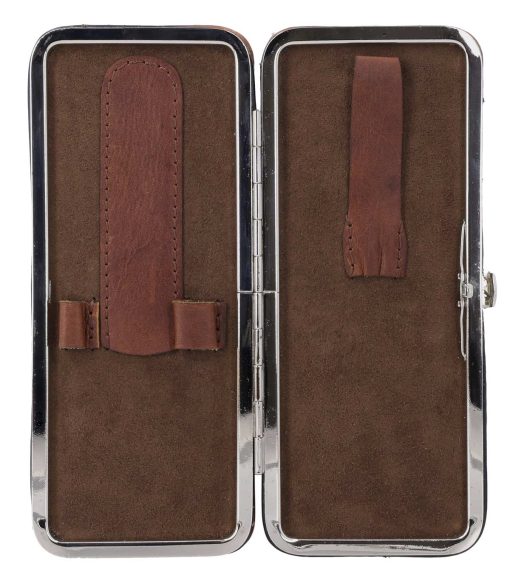 Das „Aluna“ Maniküre-Etui verbindet Vintage-Design mit hoher Funktionalität. Gefertigt aus hochwertigem, braunem Leder, verleiht es Deinen Maniküre-Utensilien eine stilvolle und sichere Aufbewahrung. Das Schnappschloss sorgt für eine zuverlässige Verschließbarkeit, während das weiche, braune Wildleder im Inneren Deinen Werkzeugen einen sicheren Platz bietet. Die sorgfältige Verarbeitung garantiert nicht nur Haltbarkeit, sondern auch einen einzigartigen Look, der mit der Zeit noch an Charme gewinnt.