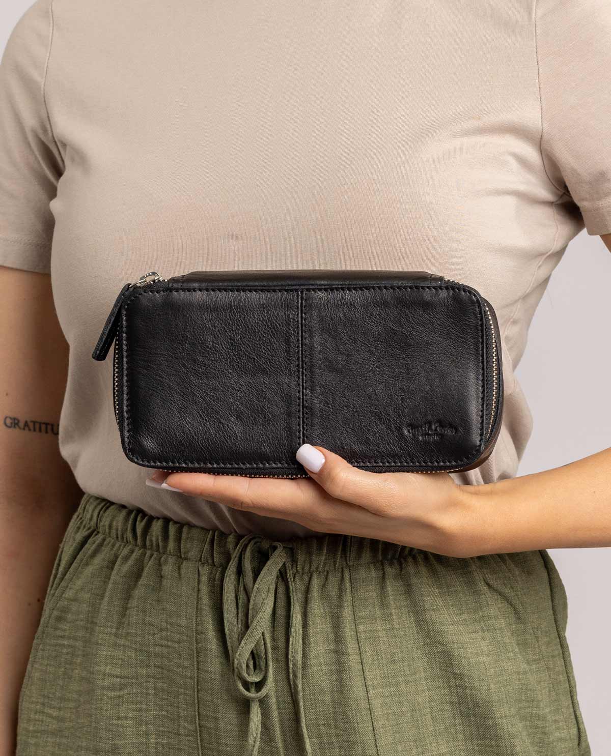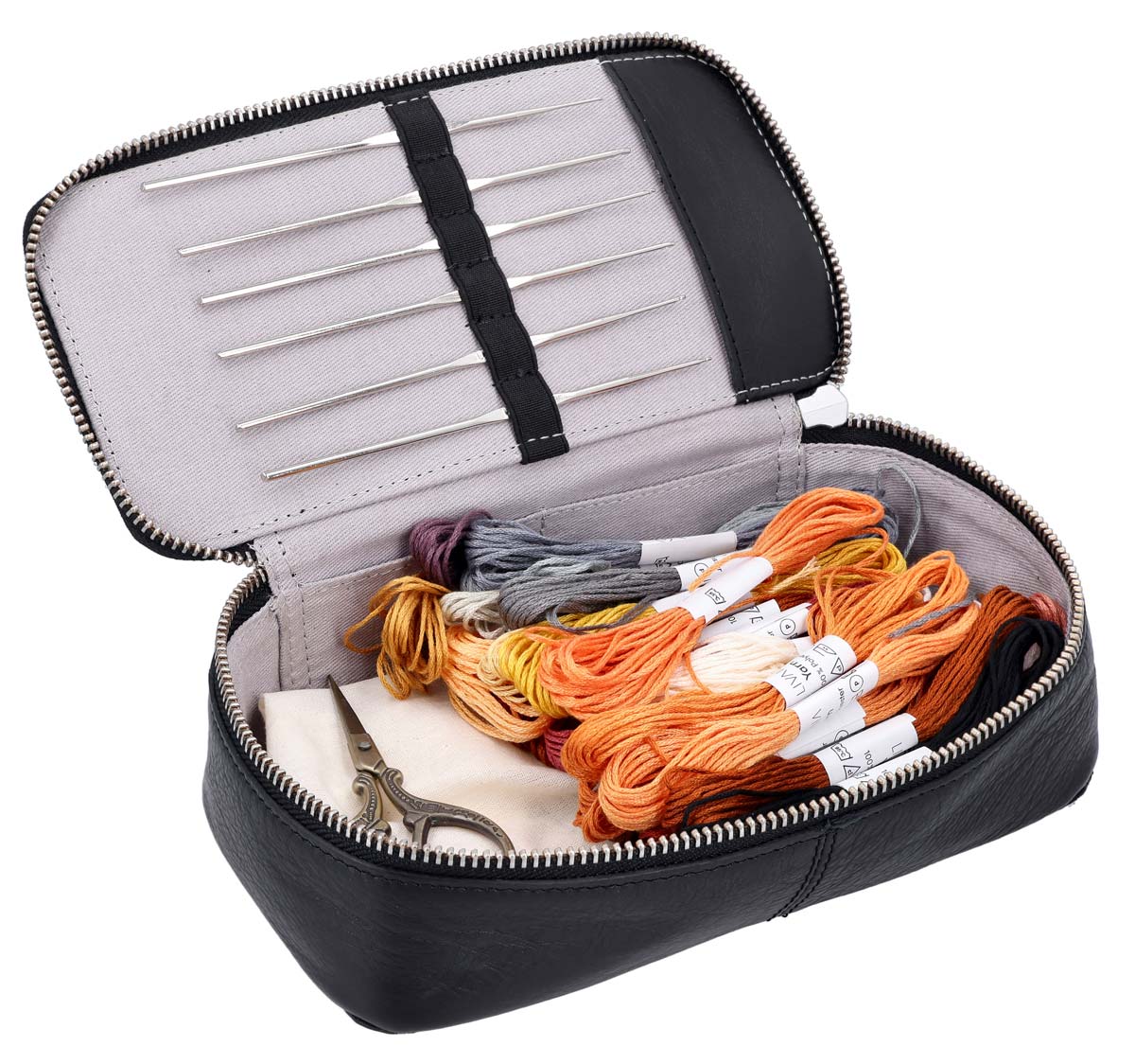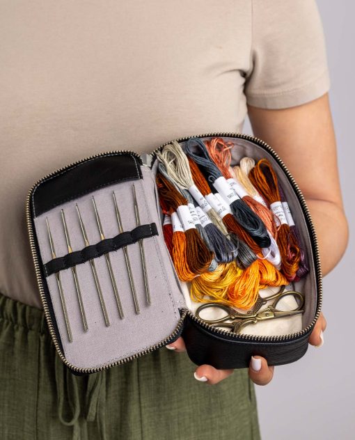Mit „Daline“ hast Du Deine Häkelnadeln immer griffbereit – stilvoll, sicher und gut organisiert. Dieses edle Häkeletui aus hochwertigem schwarzem Leder ist die perfekte Wahl für Damen und Herren, die ihre kreativen Werkzeuge elegant aufbewahren möchten.
