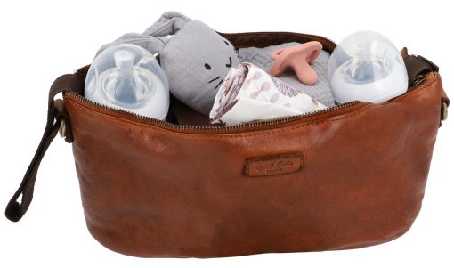 Das hochwertige braune Leder verleiht dieser Babytasche nicht nur ein ansprechendes Erscheinungsbild, sondern auch Langlebigkeit und Strapazierfähigkeit. Sie ist nicht nur funktional, sondern auch ein echtes Fashion-Statement.