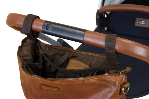Elegante und praktische Babytasche mit Trolley-Funktion aus hochwertigem braunem Leder
