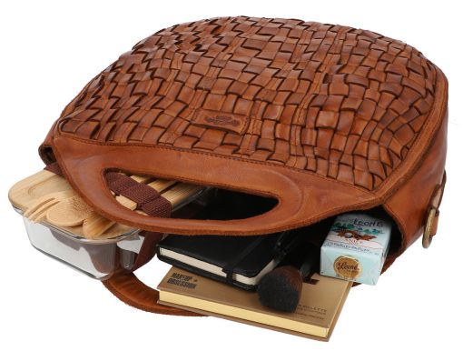 Unsere halbrunde Ledertasche verbindet eleganten Vintage-Stil mit praktischer Funktionalität. Sie ist aus hochwertigem braunem Leder gefertigt, das mit der Zeit eine schöne Patina entwickelt. Du wirst die Vielseitigkeit dieser Tasche lieben, die mit einem verstellbaren Schulterriemen und zwei stabilen Griffen ausgestattet ist. So kannst Du sie je nach Bedarf und Anlass bequem tragen. Inspiriert durch Berlin ist diese Tasche nicht nur ein praktischer Begleiter, sondern auch ein echtes Mode-Statement.
