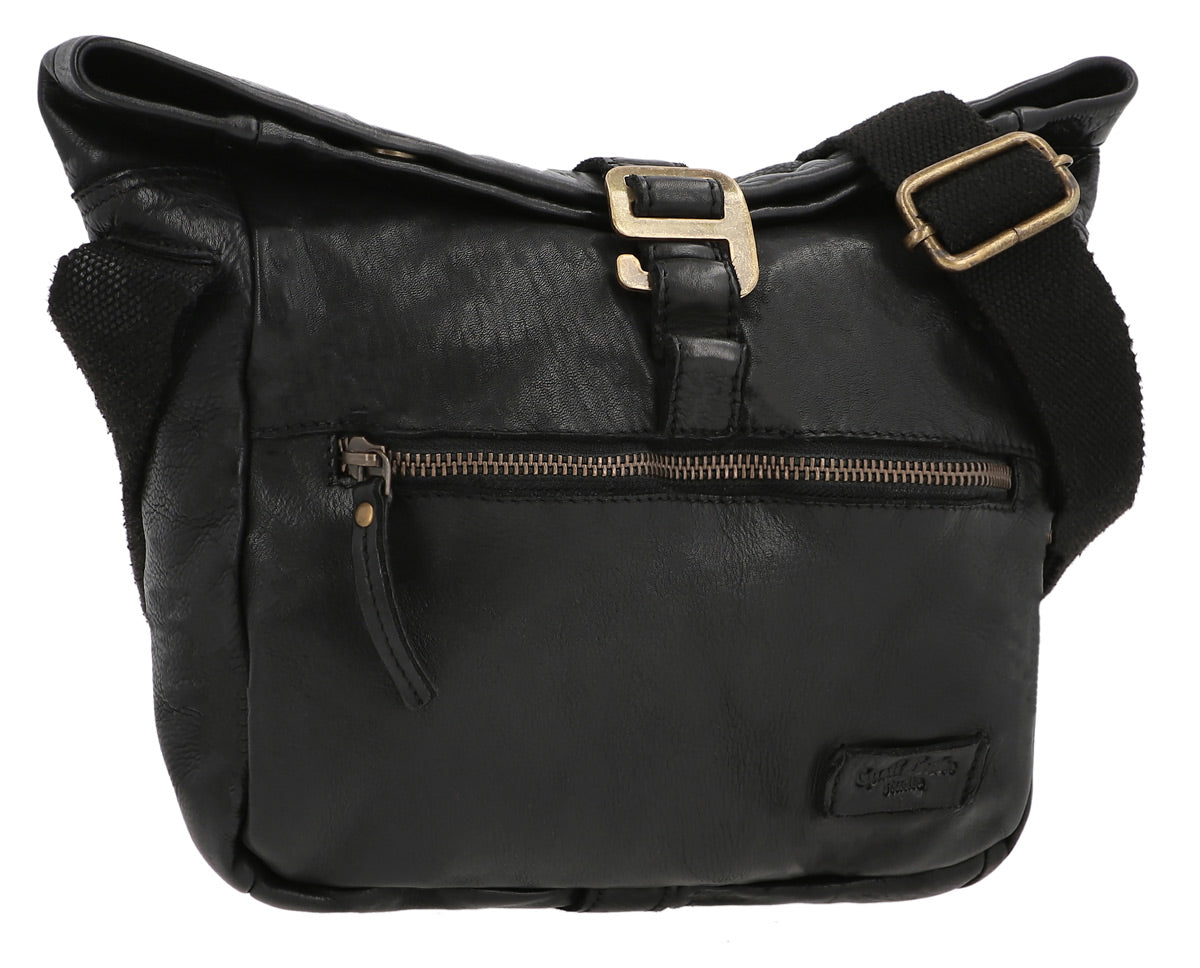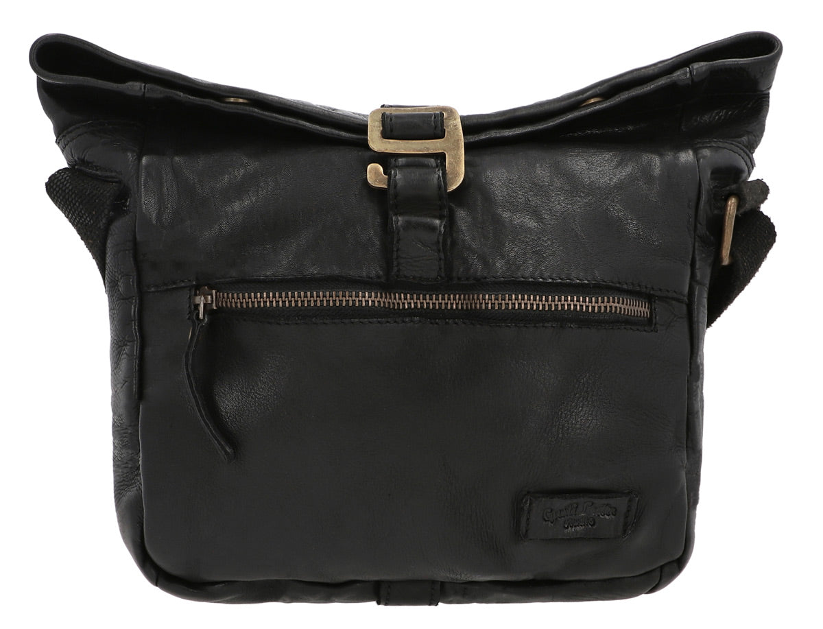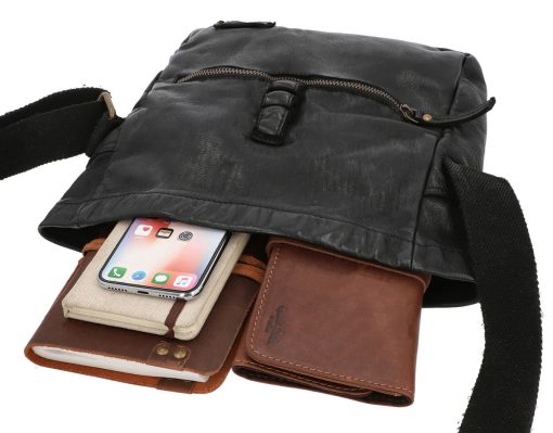 Entdecke die ultimative Kombination aus Stil und Funktionalität mit unserer Leder Umhängetasche. Ausgestattet sowohl mit einem klassischen Verschluss als auch einem praktischen Haken, bietet diese Tasche doppelte Sicherheit für Deine Wertgegenstände. Das edle, vintage-schwarze Leder verleiht jedem Outfit einen Hauch von Eleganz und hebt sich durch seine einzigartige Textur und Farbtiefe ab.