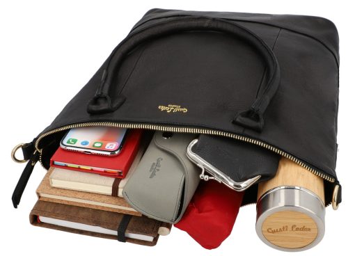 Aus hochwertig gegerbtem Rindsleder besticht diese Unhängetasche durch ihre schiere Größe und bietet dir Vielseitigkeit auf höchstem Niveau. Das extragroße Innenfach von „Mia“ hat dabei 10 L Fassungsvermögen und bietet daher genug Raum für alles. Hier finden dein 15 Zoll Notebook, Geldbörse, kleiner Regenschirm, diverse Notizbücher, Schlüssel und Stifteetui ihren Platz. Zusätzlich ist durch die große Öffnung genügend Stauraum für den ein oder anderen spontanen Einkauf verfügbar.Zusätzlich hast du noch ein Nebenfach hinten, in welches du ad hoc Sachen verstauen kannst, wie Kopfhörer oder Schlüssel.