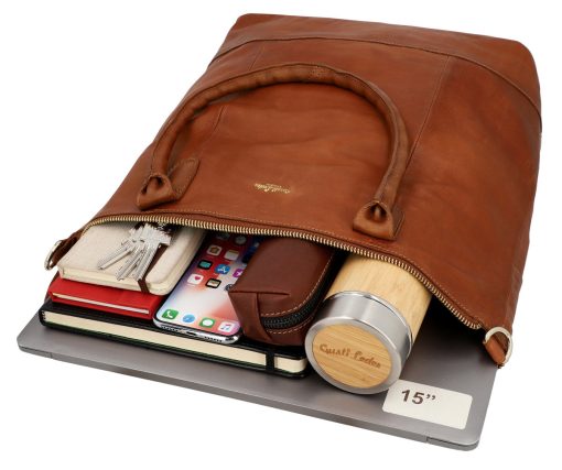 Aus hochwertig gegerbtem Büffelleder besticht diese Umhängetasche durch ihre schiere Größe und bietet Dir Vielseitigkeit auf höchstem Niveau. Das extragroße Innenfach von „Mia“ mit 10 Litern Fassungsvermögen bietet genug Raum für Dein 15-Zoll-Notebook, Geldbörse, kleinen Regenschirm, diverse Notizbücher, Schlüssel und Stifteetui. Durch die große Öffnung hast Du zudem Platz für spontane Einkäufe. Ein zusätzliches Nebenfach auf der Rückseite eignet sich perfekt für Kopfhörer oder Schlüssel, die Du schnell griffbereit haben möchtest.