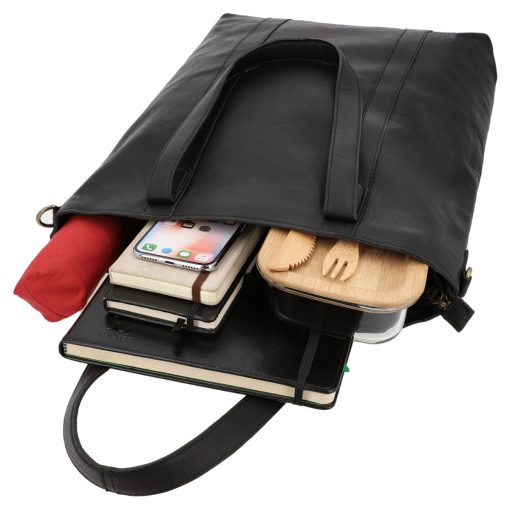 Eigentlich ist Paris eine gar nicht ganz so große Tasche, was das angeht ist sie allerdings ein wahres Platzwunder! Oder hättest du gedacht, dass in diesen kleinen Shopper sogar ein kleiner Laptop hineinpasst? Wenn du statt Home Office lieber im nächsten Café arbeiten möchtest ist das mit Paris kein Problem mehr! Du brauchst nicht gleich die riesige Laptoptasche herauszukramen, sondern kannst deinen Laptop den kurzen Weg über in der Handtasche transportieren. Das weiche Büffelleder verleiht der Tasche einen coolen Vintagelook, so bist du top gestylt unterwegs! Im Innere findest du mehrere kleine Taschen, um immer Ordnung zu halten. Die großzügigen Henkel einfach über die Schulter geworfen und los geht es. Zusätzlich bietet der lange, abnehmbare Schulterriemen noch mehr Tragekomfort – perfekt, um ihn bequem über der Schulter oder quer zu tragen, ganz nach Lust und Laune!. Und um dem noch die Krobe aufzusetzen, kannst du „Paris“ in elegantem Schwarz oder lässigem Braun erhalten.